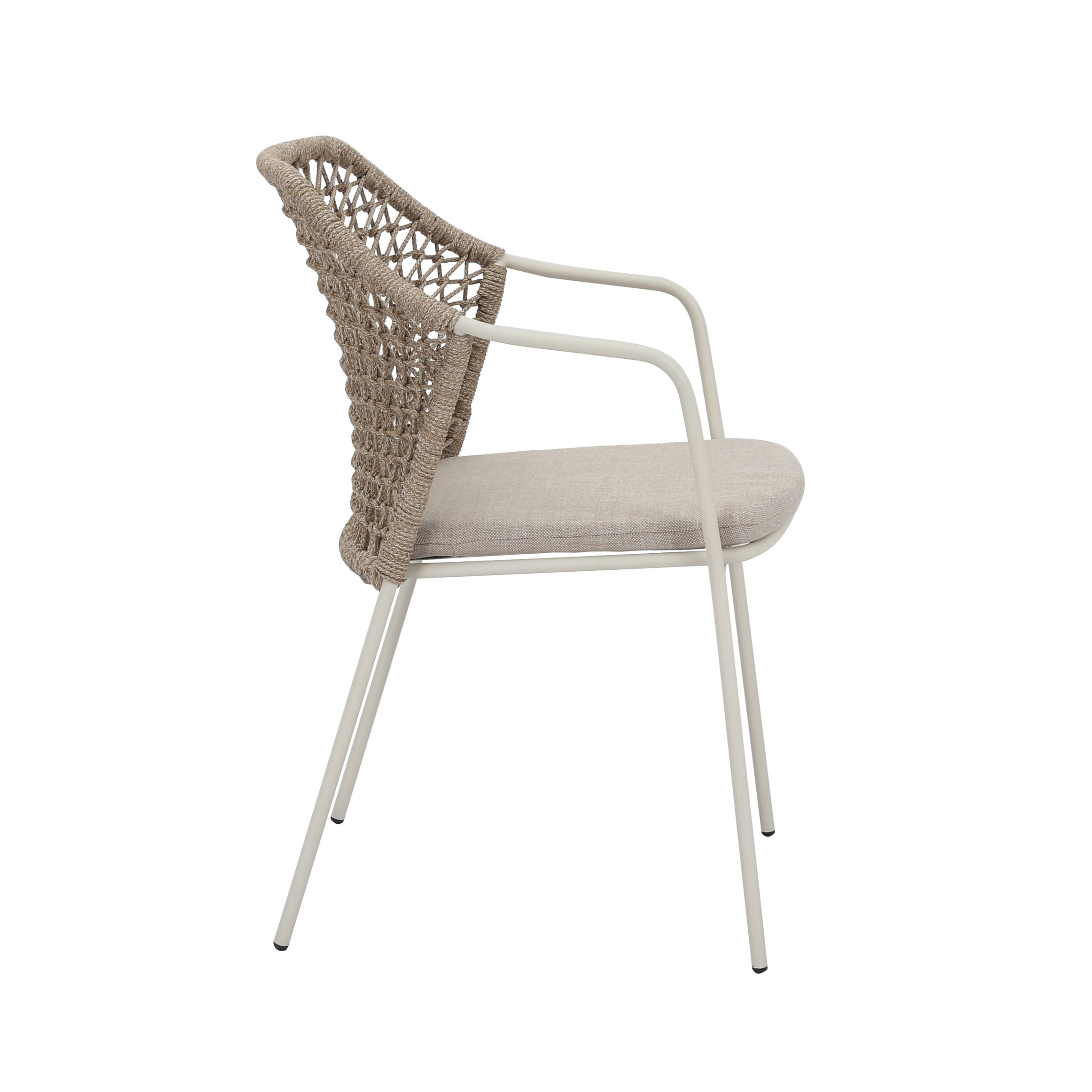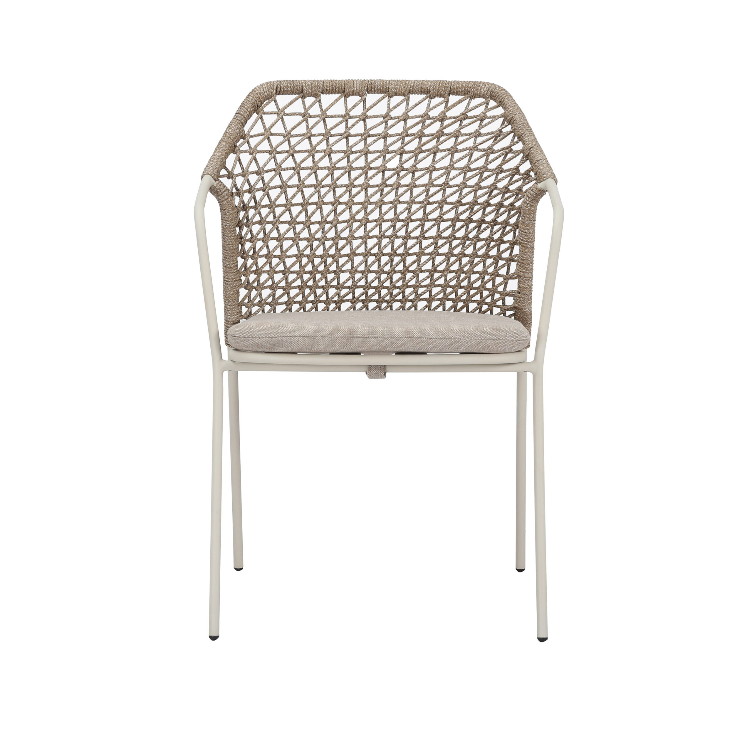 La chaise Burano offre un mélange de design moderne et de fonctionnalité pour votre coin repas d'extérieur. Fabriquée en acier robuste et dotée d'un dossier et d'une assise en corde, cette chaise empilable est à la fois stylée et durable. Le coussin de siège inclus améliore le confort, la rendant idéale pour les repas prolongés et les rassemblements. Son design léger et minimaliste lui permet de s'intégrer harmonieusement dans tout patio ou jardin.